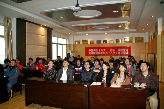 十八大会拉帷幕,党的事业谱新篇。11月8日上午9点,中国共产党第十八次全国代表大会在人民大会堂拉开盛大帷幕,麻豆a片 师生代表在综合楼八楼会议室举办了“举国同庆十八大,团结一致跟党走”集体观看十八大开幕式直播活动。党总支副书记吴太福、学生会分团委书记郭勇等老师一并观看了大会直播盛况。
