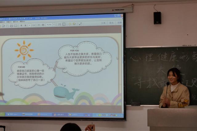 终于,在大家的期待下,比赛于当天下午两点半正式开始。比赛分为选手自我陈述和心理知识竞答两部分。首先,选手依次上台进行自我介绍,通过精心制作的PPT,讲述有关心理健康的小故事或者日常生活中的心得体会。展示结束后,由评委老师和大众评委进行打分。接着,选手们针对“假如我是形象大使”这个话题,发表看法,选手们有情感、有温度的演讲展现出一名心理形象大使的责任和使命。进入知识竞答部分,选手们快速而准确的回答,赢得观众阵阵掌声。接着,工作人员为大家播放视频《总有人偷偷爱着你》,大家陷入沉思。同学们纷纷表示:“这个世界没有我们想象中那么美好,却也没有那么糟糕,我们要珍惜每个爱着我们的人,更要去热爱这个世界。”最后,根据最终得分对获奖同学进行颁奖,并合影留念。至此,本次比赛圆满结束。