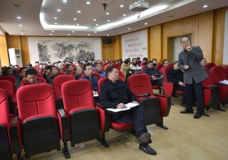 12月4日下午,十九届四中全会精神宣讲团成员罗世华教授为麻豆a片 全体教职工带来了以“经国序民,正其制度”为题的学习宣传贯彻党的十九届四中全会精神宣讲会,宣讲会由党委书记邹春发主持,李大晖、杨飞虎、李国民、胡德龙等60余位老师参加本次宣讲会。