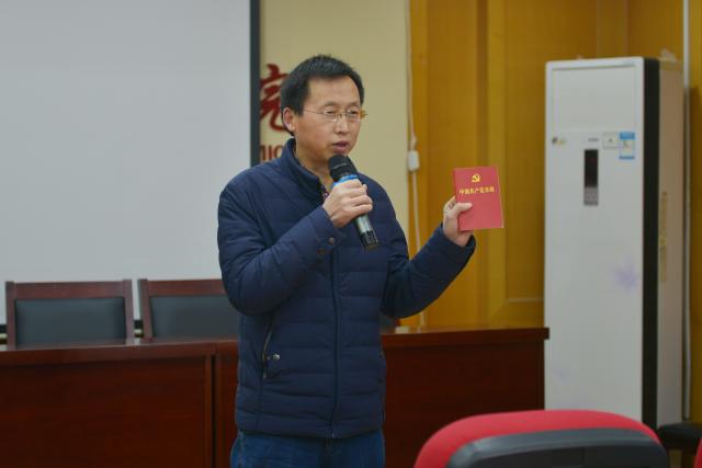 再次,他指明要有坚定的政治立场和政治信仰。要在工作学习生活中不断实践,自觉按照要求去做,才能做到立场坚定,永不变色。他通过案例告诉大家,理想信念是否坚定是党员的首要标准。要做到“两个维护”,坚决维护党中央的权威和习近平总书记党中央和全党的核心,牢固树立政治意识、大局意识、核心意识、看齐意识。最后,李书记带领大家学习了党章,通过学习党章,大家了明确党的性质,明确党员的权力和义务,将自觉做到遵守党章。