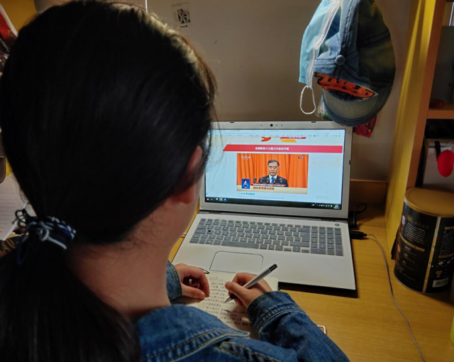 5月21日下午,全国政协十三届三次会议在北京人民大会堂开幕。麻豆a片 本科生党支部组织学生党员通过学习强国、中新网等等平台观看直播。