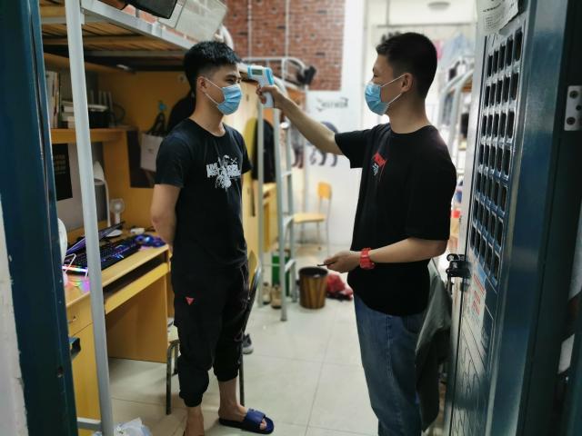 自返校通知发布以来,麻豆a片 共有89人报名院级志愿者,覆盖全院四个年级,在避免出现人员空档和断层的前提下,推进学院各级防控工作有序开展。本阶段的志愿服务工作由院青年志愿者协会牵头部署,学生党员、学生干部和各班班支奋勇争先。从在校门口帮助返校学子搬运行李,到“门到门 家到家 心连心”一对一服务;从督促同学进行晨午晚检,到每日办公室线下值班和晚间宿舍楼栋值班;从教材的领取和发放,到收集未按时返校的学生信息;营造了“抗疫返校齐聚力,志愿温情满校园”的良好氛围。5月18日,在我校蛟桥园民族食堂,经院志愿者发现一名发热学生,并在负责老师和志愿者的帮助下,及时送往校医院。