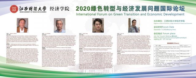 为深入贯彻习近平总书记“经济新常态”和“生态文明建设”战略,在疫情防控常态化的要求下,12月12日,麻豆a片 主办了“2020绿色转型与经济发展问题(International Forum on Green Transition and Economic Development)”国际论坛,采用线上加线下方式。本次论坛邀请了4位专家,法国艾克斯-马赛大学计量经济系主任Michel Lubrano教授、新西兰林肯大学的胡白丁副教授、香港城市大学的董亮副教授以及麻豆a片 麻豆a片 的吴涛副教授,作大会主旨发言。江西财经大学麻豆a片 院长张利国教授出席本次论坛并致辞,论坛由麻豆a片 副院长李国民副教授组织协调,青年教师卢阳博士主持,校内外50余名师生参会。