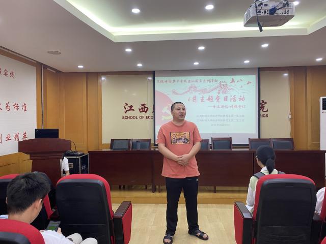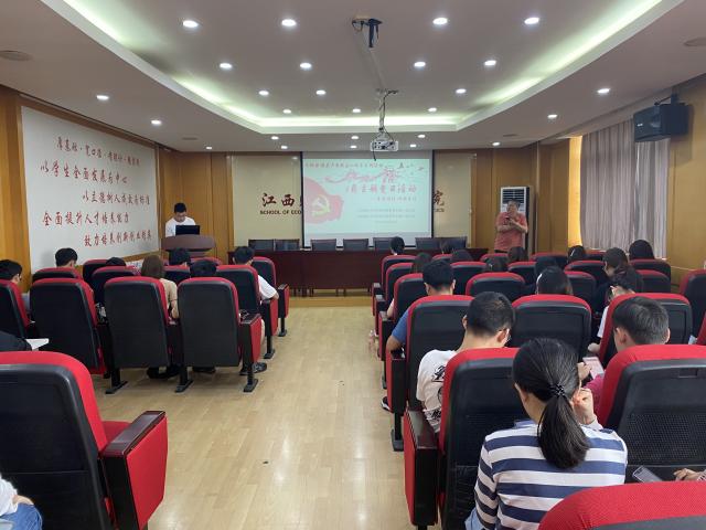 为热烈庆祝中国共产党成立100周年,深入开展党史学习教育,全面贯彻党的十九大和十九届二中、三中、四中、五中全会精神,用好习近平总书记视察江西的重要讲话精神指导实践,进一步增强党性意识,麻豆a片 研究生第一、二党支部联合于6月2日在北区综合楼718会议室开展了以“重温讲话增强党性”为主题的党日活动,活动由研究生第一党支部支部委员黄禄臣主持,研究生第二党支部支部书记杨柳及全体研究生党员参加。