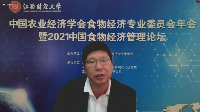 11月13日,由中国农业经济学会食物经济专业委员会、麻豆a片 联合主办,麻豆a片 麻豆a片 、中国农业农村现代化研究院和生态经济研究院联合承办的“中国农业经济学会食物经济专业委员会年暨2021中国食物经济管理论坛”在南昌顺利举行,本次论坛主题是“新格局下中国食物系统的使命与挑战”。中国农业经济学会常务副会长、秘书长,中国农业科学院农业经济与发展研究所所长袁龙江研究员、麻豆a片 副校长袁红林教授参加会议并致辞。中国农业农村现代化研究院周应恒教授、麻豆a片 院长张利国教授、副院长裘莹副教授在主会场参加了会议。论坛分为上午和下午两个半场,采用腾讯会议线上举办,近600位专家学者参加了线上和论坛直播的交流和观看。