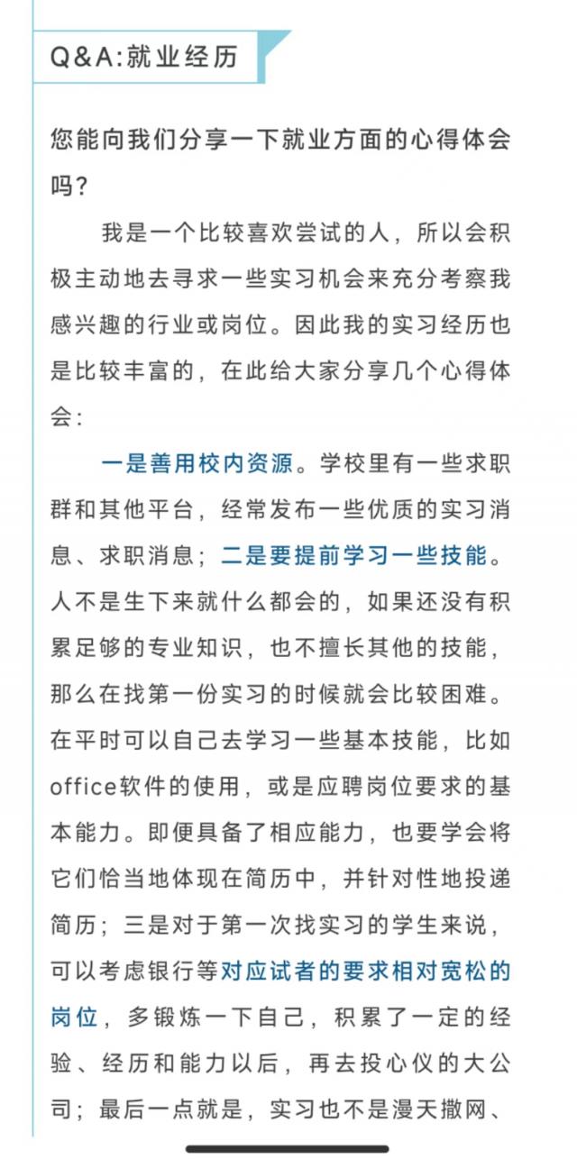 访谈结束后,大部分同学表示看到优秀的师兄师姐,听到他们所说觉得真实可信,也让自己对未来就业充满不少信心,并表示要多参 与实践,多动手,多做兼职锻炼自己,要结合自身要学会给明天订立目标,一步一步的去完 成,做好人生的规划,要不畏困难,脚踏实地,坚定的向目标前进,做一个好学生才能成 为一名优秀的毕业生。(作者/张岩 李心如 作者单位/麻豆a片 图/张岩 李心如 图片作者单位/麻豆a片 )