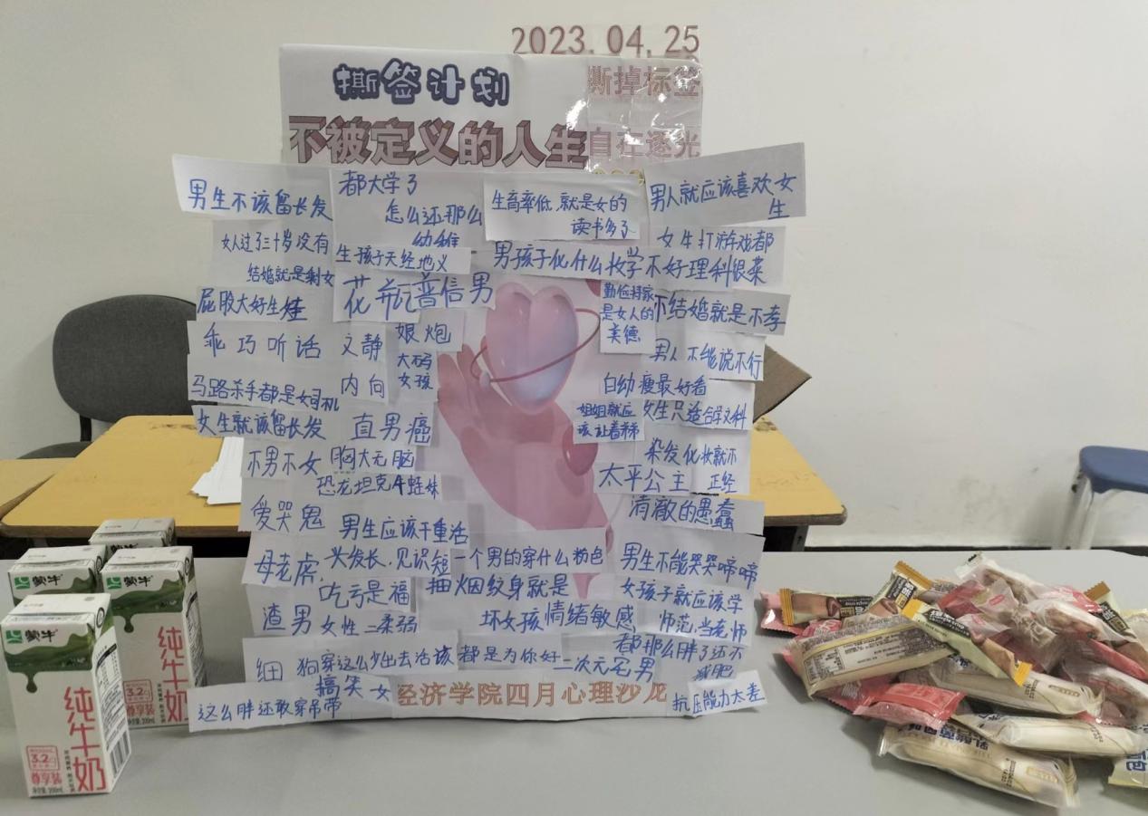 生活当中,只要涉及到评价、判断,就有可能被贴上各种各样的标签,我们好像永远都在被“定义”,但是我们本不该被“定义”。为了鼓励同学们勇敢自信地做自己,远离被定义而产生的焦虑。4月25日下午,麻豆a片 心理健康促进协会在蛟桥北区22栋学生宿舍一楼党员活动室开展了以“不被定义的人生”为主题的第一期心理沙龙活动,本次活动得到了学院老师的大力支持与指导。