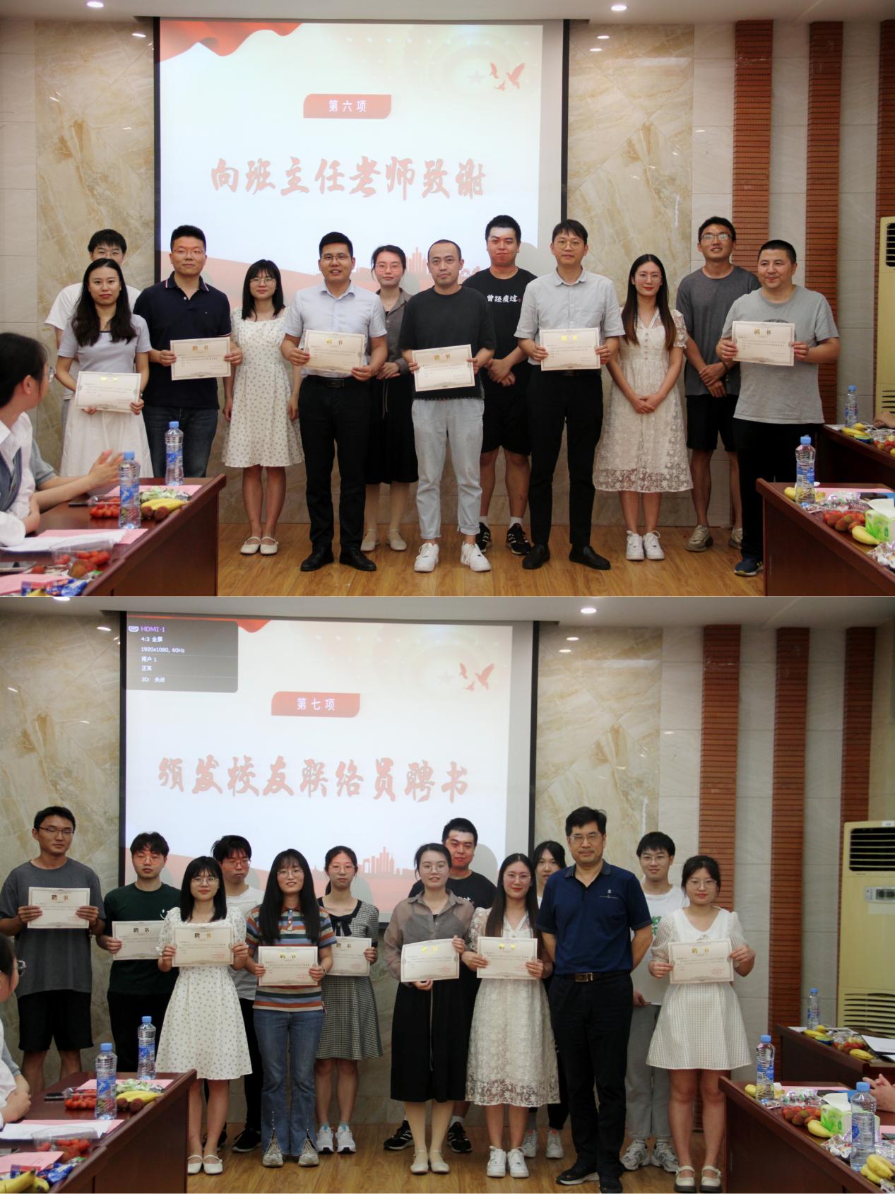 毕业生代表向班主任老师进行了致谢并颁发“大家长”聘书,感谢班主任老师的悉心教育和培养。副院长杨飞虎为各班校友联络员颁发聘书,希望他们当好纽带,架起校友与学院的桥梁。