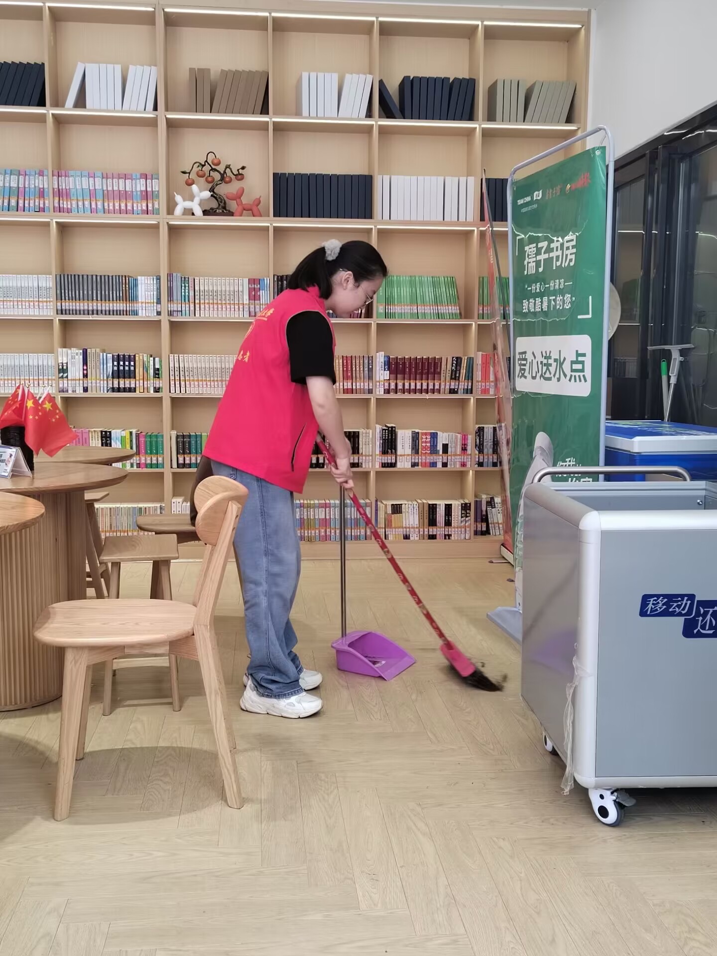 一些志愿者在清扫完地面的垃圾后,及时提醒在书房阅读的读者保持书房内地面的整洁与干净。在志愿者们的共同努力下,孺子书房为大众提供了一个温馨,安静的阅读环境,使读者们流连忘返。推动全民阅读。