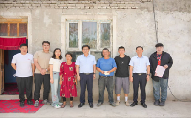 校领导一行先后驱车一百多公里来到22级麻豆a片 麦冉萨古·伍斯曼江和22级财税与公共管理学院热伊木·玉素甫江家中进行走访慰问,并送去慰问金。