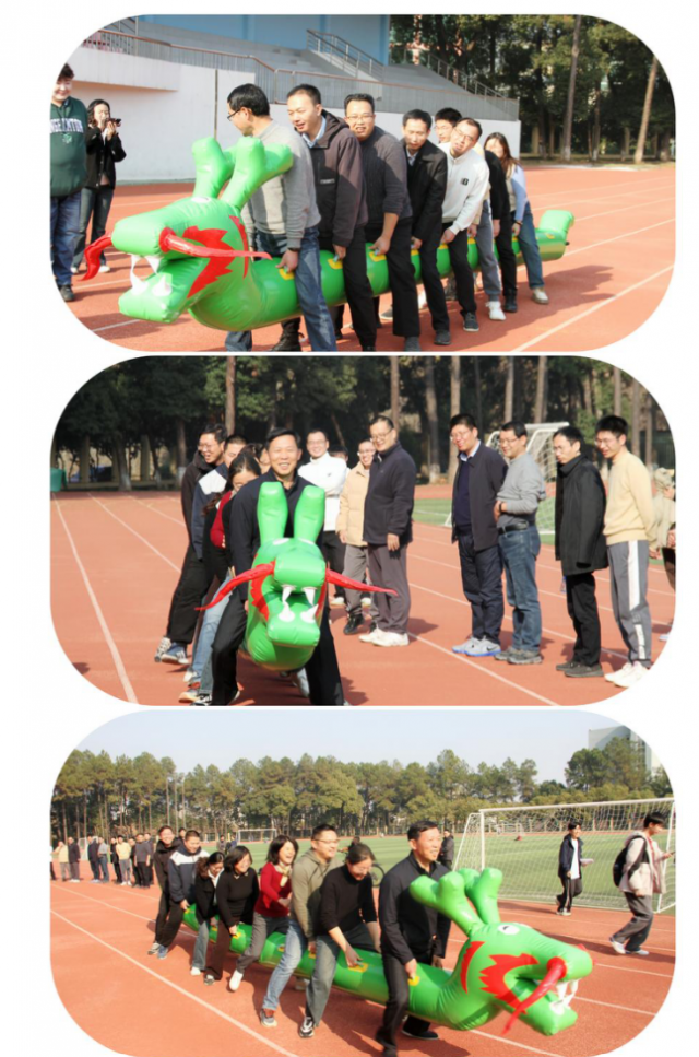运动会以教学系为单位开展,学院四个教学系和行政办公室共五支代表队参赛。比赛项目包含投壶比赛、无敌风火轮、不倒森林、充气龙舟跑、沙包掷盘、躲避沙包六个项目。