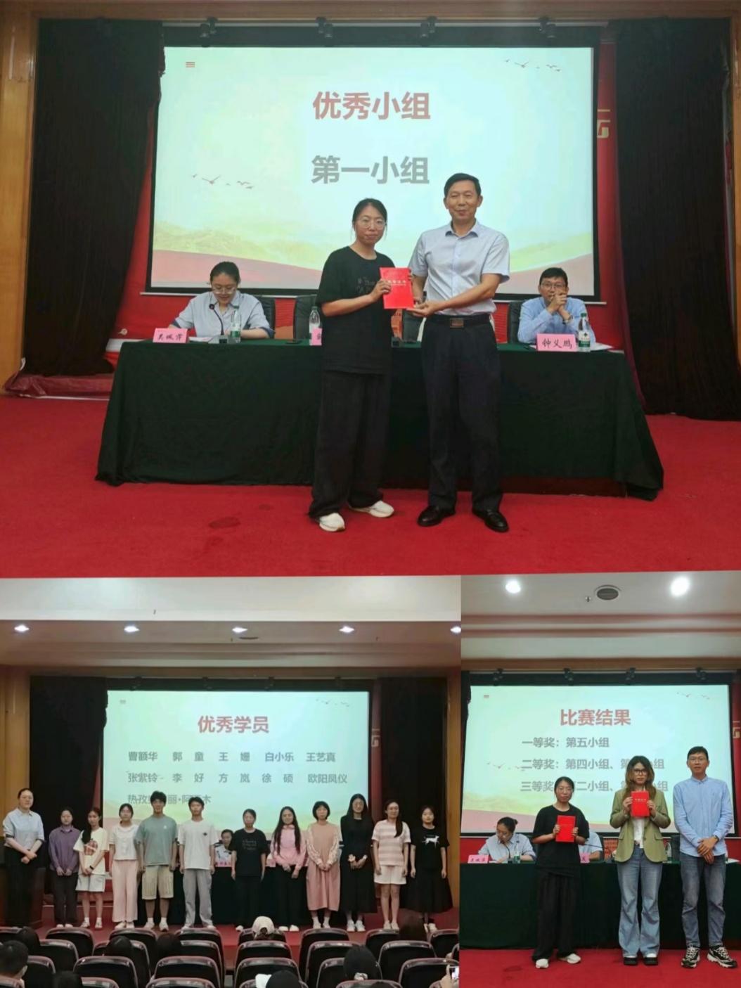 随后,党校培训班班主任吴佩芹老师宣读了关于表彰党校优秀小组、优秀学员的决定以及第三届“青年红”沉浸式微党课大赛的比赛结果。党校优秀学员代表王艺真回顾了党校的课程带给他的收获,通过学习,学员们不仅对中国共产党有了更深入的认识,在精神上、行动上更加坚定地向党组织靠拢,他倡议所有积极分子要将所学知识内化于心、外化于行,以实际行动服务人民,以实际成效展现青年风采。