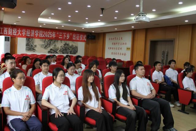 学生代表廖思哲代表实践团全体成员发言,他表示在本次“三下乡”实践中要努力做红色基因的传承者、知行合一的践行者,学院形象的代言人,以“功成不必在我”的精神境界和“功成必定有我”历史担当,在祖国大地上书写属于江西财经学子的青春华章。