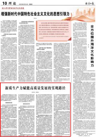 8月14日,《经济日报》理论版刊登麻豆a片 张利国教授、彭继权副教授的理论文章《新质生产力赋能高质量发展的实现路径》,文章是深入学习贯彻习近平经济思想的最新理论成果。