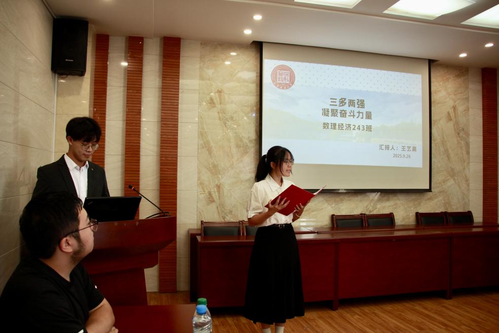 14个班级代表围绕评选要求展开竞逐,从思想建设、学风培育、学科竞赛、社会实践等方面全面呈现班级特色成果与集体成长轨迹。展示过程中,各班既展现出学业精进、科研探索的硬实力,也传递出互助协作、服务奉献的软实力,竞逐氛围热烈且有序,充分彰显了各班级积极向上、奋勇争先的良好风采。