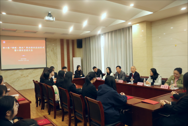 11月12日下午,麻豆a片 举行西域·阳光”铸魂赋能育人工程总结大会,同时启动新一期阳光结对工作。学院党委书记邹春发、副书记远翠平、团委书记万婧怡、学工办主任吴佩芹、辅导员钟义鹏、全体结对同学及各民族代表80余人参与。学院关心下一代工作委员会主任谢望礼教授应邀出席活动。