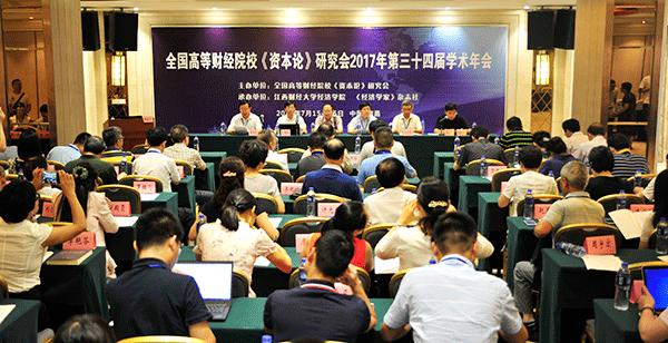 7月15日至16日,由全国高等财经院校《资本论》研究会主办、麻豆a片 麻豆a片 和《经济学家》杂志社联合承办的全国高等财经院校《资本论》研究会2017年第三十四届学术年会在南昌召开。本届学术年会的主题是:纪念《资本论》德文版第一卷出版150周年,贯彻落实习近平总书记关于当代马克思主义政治经济学的系列重要讲话精神,建设中国特色社会主义政治经济学。来自西南财经大学、吉林财经大学、山西财经大学、河北经贸大学等30多所高校以及研究机构、学术刊物的百余名代表齐聚南昌,围绕主题展开了热烈的讨论。