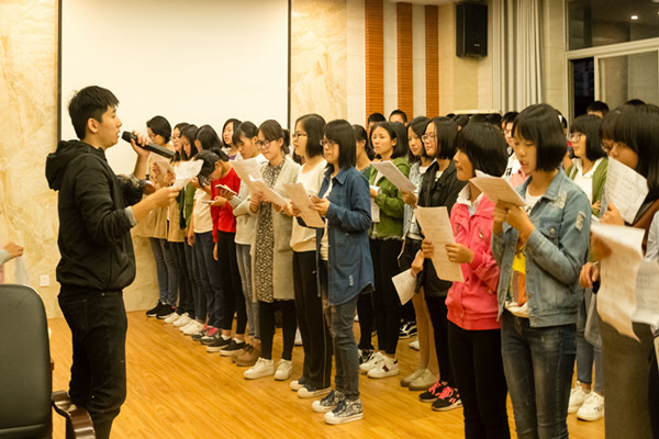 “横断山,路难行,天如火来水似银......”微凉的夜风中传来整齐的歌声。为准备“一二?九”大合唱,麻豆a片 麻豆a片 于蛟桥园北区综合楼定期开展合唱团排练,排练进展顺利。