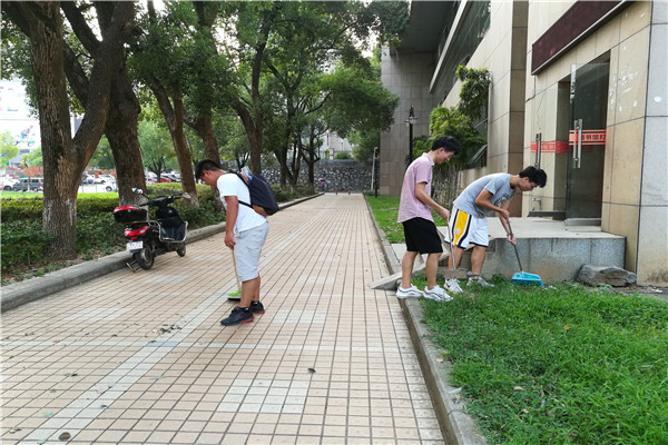 当天下午,在夕阳的余晖下,各班同学各自从寝室带来扫把、垃圾袋等物品,按照提前划分好的区域开始分工打扫。尽管天气闷热,同学们干起活来依旧卖力。不一会儿,干净的路面、整洁的崛起广场、清晰的雕塑就出现在了人们眼前,路旁的草坪整齐划一,没有了塑料袋和枯叶,就像再次获得了新生。垃圾桶外壳干净无灰尘污渍,就连路边的水沟中的垃圾也被细心的同学一一清除。同学们耐心地清除每一处卫生死角,做到无垃圾、无杂物、无污水。清扫完毕后,同学们将清理的垃圾杂物、石块、废旧物品等统一堆放在道路沿线,等待垃圾清运车辆进行清运。最后,在班长和团支书检查并确认打扫完成后,等待青协委员前来检验查看。