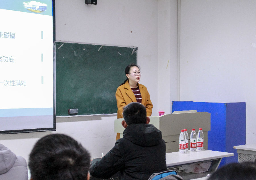 晚上7点,分享会如期举行。主持人向大家隆重介绍了学姐曹迪,同学们以热烈的掌声表示欢迎。首先,曹迪对比赛做了简单的介绍,突出比赛的含金量。随后,她就准备比赛需注意的各个方面为同学们做了详细介绍,包括选题方向、团队选择与分工、答辩技巧。接着,她介绍了团队合作、材料搜集、结构合理创建、可行性分析等比赛项目的基本内容。她表示,在团队选择方面,整个团队要具有法学知识、会计头脑、统计概念、一定的思辨能力和文案功底。最后,她分享了自己比赛的经验与感悟,并告诫大家,对待比赛,要有持之以恒的耐心、团队协作精神、吃苦耐劳的毅力、开阔的视野。在场的同学获益良多。