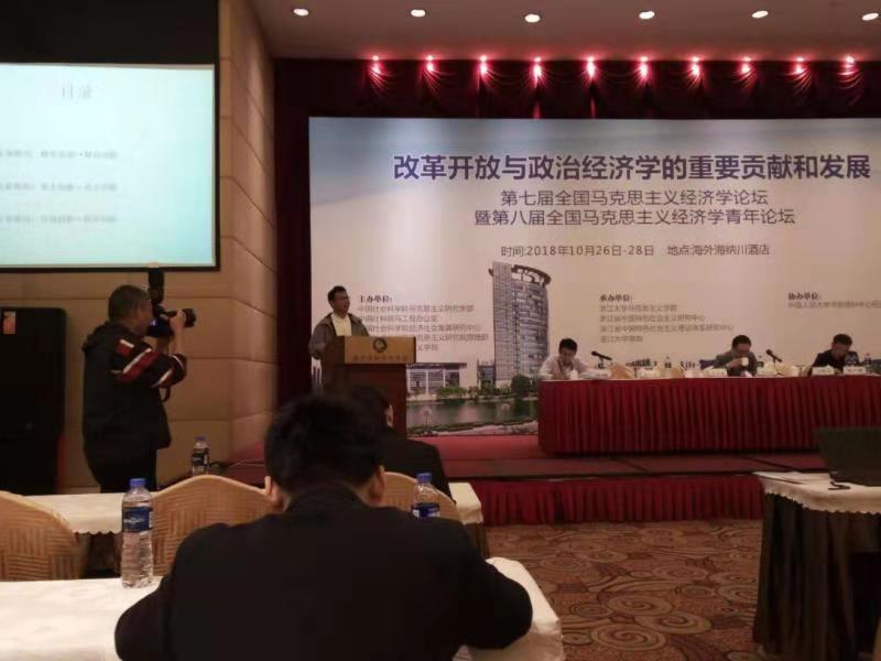 刘爱文老师应邀参加第七届全国马克思主义经济学论坛暨第八届全国马克思主义经济学青年论坛 时间:2018-11-08 08:26:57 作者: 阅读: 为纪念马克思诞辰200周年、《共产党宣言》发表170周年和中国改革开放40周年,进一步推动马克思主义政治经济学对现实问题的解释和应用,并结合时代变化与世界经济最新发展,丰富完善马克思主义政治经济学理论,由中国社会科学院马克思主义研究学部主办、浙江大学马克思主义学院承办、中国人民大学书报资料协办的“第七届全国马克思主义经济学论坛暨第八届全国马克思主义经济学青年论坛”于2018年10月26-28日顺利在浙江大学召开。出席此次会议的200多位专家学者分别来自中国社会科学院、浙江大学、清华大学、南京大学、中国人民大学、南开大学、四川大学、中山大学、武汉大学、西南财经大学、华中科技大学、中央财经大学、麻豆a片 、吉林财经大学、太原科技大学、辽宁经贸学院、浙江海洋大学、中共福建省委党校、中共杭州市委党校、福建师范大学、哈尔滨工业大学、辽宁大学、西南大学、中国人民银行等全国多所知名高校及科研机构。本次会议围绕“马克思主义政治经济学基本原理及其当代价值研究”“习近平新时代中国特色社会主义思想研究”“技术变革与社会发展的政治经济学研究”和“青年马克思主义学者(硕博)研究论坛”等主题展开了热烈的讨论。应会议主办方邀请,麻豆a片 麻豆a片 刘爱文老师作为中青年代表在10月28日的闭幕式上作了“新时代我国科技创新三重路向及其历史内涵诠释”的主题报告,引起了与会代表的热烈讨论,会议期间,刘爱文老师还同全国各大高校从事政经教育事业的青年同行们进行了广泛而深入的交流。 上一篇:东北农业大学经济管理学院张永强一行来麻豆a片 调研交流 下一篇:麻豆a片 学子在首届全国高校经济学综合博弈实验大赛取得佳绩
