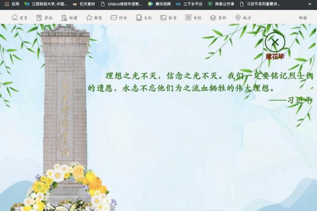 清明今又来,英雄花盛开。为了铭记为民族独立、人民解放和国家富强、人民幸福作出巨大贡献和牺牲的英雄烈士,树立崇尚英雄、缅怀先烈的良好风尚,营造传承英烈精神、奋进新时代的良好氛围,麻豆a片 开展线上祭先烈活动,同学们纷纷用敬仰的情怀,为英雄烈士点亮一盏灯、献上一束花、躹下一个躬。