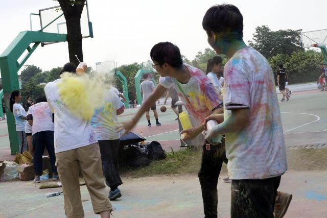 活动正式开始前,麻豆a片 宿管部下至各寝宣传本次活动,并统计参加活动人数以准备活动物资。活动当天下午,同学们在篮球场集合,在确保学生安全卫生的前提下,工作人员积极组织同学们换上统一的白色短袖。他们纷纷用马克笔在衣服上签下彼此的姓名或是写下对未来的期望和祝福。本次活动使用了青、红、白、黑、黄五种颜色的五谷粉末,象征同学们五彩斑斓的青春,在工作人员向在场同学喷洒红色彩虹粉后,活动正式开始。同学们均跃跃欲试,纷纷用彩色的粉末进行创意涂鸦,借此给大学生活留下一个缤纷多彩的纪念。在游戏中,有的同学相互追逐喷洒粉末,尽情释放着青春活力;有的同学喷绘出“经济”二字,表达对学院的深情;有的同学看到对方满身彩色哈哈大笑,拍照纪念这份洒脱和美好……在夕阳的余晖下,篮球场的一角充满了欢声笑语,工作人员使用相机和“拍立得”将这些快乐的记忆定格成永恒,并把照片送给在场同学。最后,本次活动以五颜六色的衣服和面对镜头的笑脸画上句号。