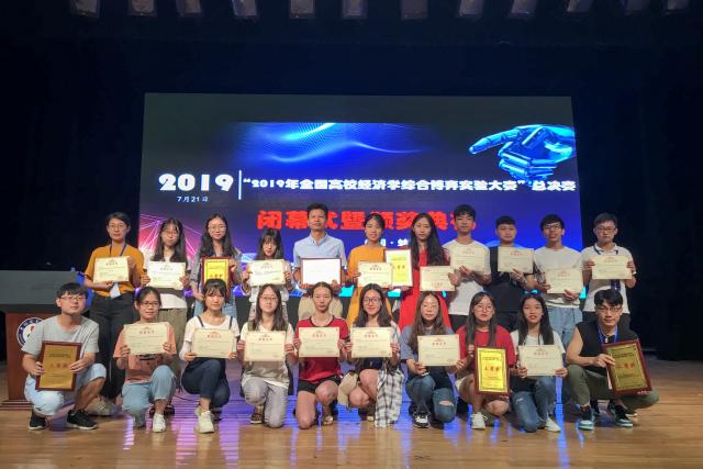 2019年7月20日,由中国数量经济学会博弈论与实验经济学专业委员会主办,安徽财经大学承办的“2019年全国高校经济学综合博弈实验大赛”总决赛在安徽蚌埠举行。麻豆a片 五支参赛队伍在李国民副院长的带领下参加总决赛,比赛中大家团结合作、不畏困难、沉着应战,展现江财学子良好的专业素养和精神风貌,团队取得了总决赛的2个二等奖,3个三等奖,以及“最佳组织奖”和“优秀裁判员”称号。