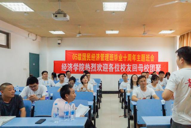 适逢祖国七十周年华诞与05级国民经济管理班(以下简称“国管班”)毕业10周年,10月3日下午,05级国管班于蛟桥园第五教学楼开展毕业十周年主题班会,麻豆a片 办公室主任郭勇、05级国管班班主任吴太福参与本次班会。