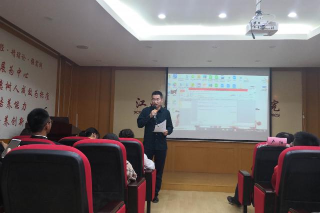 活动开始,主持人介绍了举办本次大赛的背景,目的及流程。接着,进入正式比赛环节,各参赛小组以演示文稿的形式依次展示并讲解自己的选题。其中,较为出彩的是06013小组选择的“猪肉价格上涨”的话题,该小组不仅对选题现状做出了具体分析,还对该问题的未来发展做了预估和判断,这充分运用了经济学的预估性。06006小组带来以“双十一活动”为主题的选题展示,抓住不久前双十一的“盖楼”和优惠券等促销活动,分析了此现象中包含的经济学理论知识,揭示了“双十一”购物狂欢节背后的乱象,呼吁同学们要理性消费。05046小组同样以“双十一”作为切入点,但更侧重于从整体角度分析“双十一”购物狂欢节所带来的经济效益,以及造成的资源浪费,交通运输拥堵等问题。同样精彩的还有04021小组所探讨的“视频付费不断增多,红利却不断减少”的问题,05035小组带来的“人工智能背景下财经专业大学生就业形式分析”选题展示和02005小组展示的“人口老龄化对我国的经济影响”话题,还有许多十分新颖的话题如“新能源汽车的补贴政策”,“炒鞋热”等各式各样的选题被展示出来。