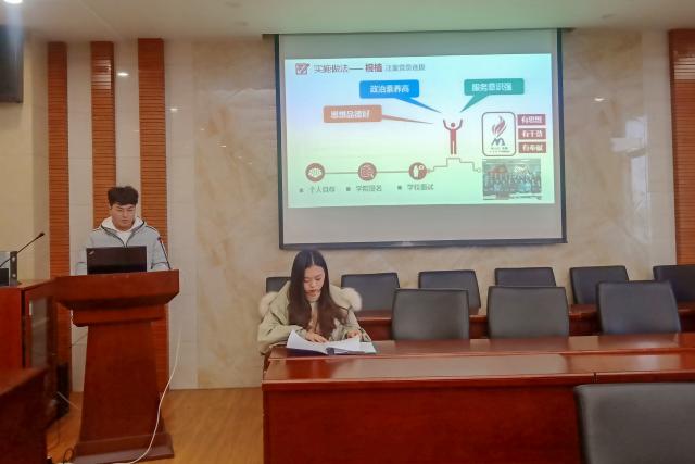 分享伊始,代靖巍同志就如何争做先锋,对井冈学子先锋班进行了简单的介绍。以映山红做喻,从根植、报春、播撒、映染四项培育措施入手展开介绍,从而达到纯洁入党动机、增强党性修养、发挥模范作用的目的,以此号召党员同志踊跃报名加入先锋班。接下来由崔垒红同志就学习党章,做一名合格的发展对象进行讲解。他指明学习党章的意义:照镜子,主要是以党章为镜,对照党的纪律、群众期盼、先进典型、改进作风的要求,在宗旨意识、工作作风、廉洁自律上摆问题、找差距、明方向。他详略得当地讲解了党章的主要内容,并且将党章的历史沿革融入其中。最后他从四个方面指出大学生应该如何学习党章:一是要加强对党章的理论研读,提高自身的政治素养;二是要树立责任意识与使命意识,以党员的标准要求自己;三是理论结合实际,联系自身实践对党章内容深入思考;四是践行社会主义群众观,力所能及的在群众中普及党章。