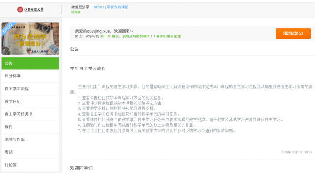 及时在学校网络教学平台上发布有关开课的通知,告知学生如何在中国大学mooc平台上注册登录并加入到本课程中,告知学习如何加入西方经济学学习交流QQ群,告知学习如何获得与本课程学习相关的各种学习资源。