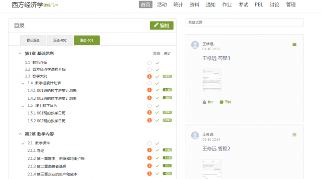 本学期《西方经济学》SPOC教学采用的是异步SPOC,是一种能够对在线资源进行整合的SPOC,在线资源采用中国大学MOOC平台上麻豆a片 王秋石等教师开设的《微观经济学原理》和四川大学张衔等教师开设的《宏观经济学》这两门MOOC,实体课堂主要是运用腾讯会议进行线上直播教学,实体课堂上主要运用学习通进行师生互动。