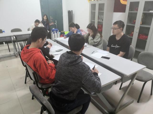 活动分成三个场次进行,每场面试安排了十二位面试者和四位面试官,分为不同论题的两组同时进行。待面试人员入场后,启航工作人员告知面试规则,并宣布面试开始。两组面试者在短暂的思考后由本组“破冰者”开始发言,面试者均十分投入,积极讨论。面试官仔细观察面试者的表现并在评分表上记录评分。在启航工作人员宣布讨论结束后,每组选出一位发言人向面试官陈述经过讨论得出的解决方案。