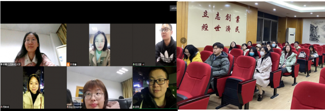 论坛第三环节(晚上6:30到9:00)采用线上加线下模型,除了线上的与会者和听众外,学院20多位研究生在麻豆a片 718会议室参与会议。该环节由六位研究生——麻豆a片 麻豆a片 范文超、陈寰、林曦、何咪咪、龚晓宇、洪玮——从环境规制与经济发展等方面分享了他们最新的英文论文。