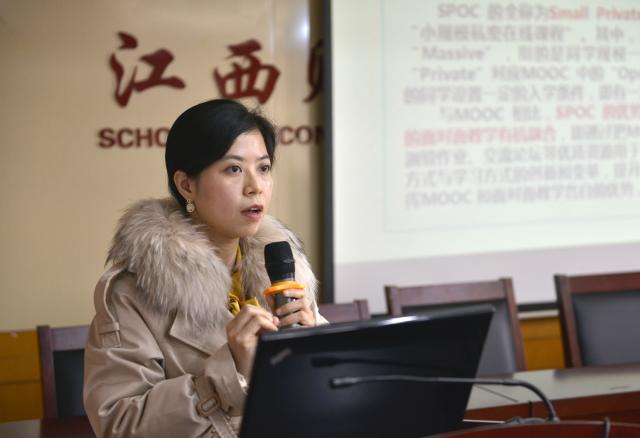 裘莹主任就《宏观经济学》课程采用SPOC教学方式进行了详细演示。课程以OBE教学理念为指导,借助中国大学慕课资源,建立慕课堂,凭借多样化教学资源,通过重构“知识、思维、能力”三位一体的目标实现来激发学生主动学习《宏观经济学》的兴趣和积极性。