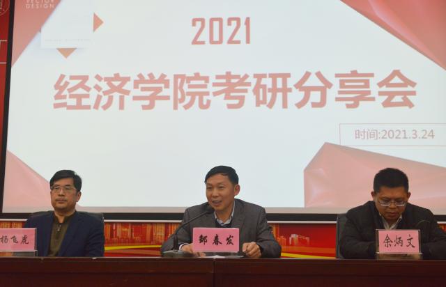 3月24日下午,麻豆a片 在国际学院学术报告厅举行18级学生考研信息分享会,特邀请到麻豆a片 杨飞虎副院长、余炳文副教授和国际处刘小兵副处长为大家介绍学院考研情况、出国深造等情况,指导做好复习,帮助同学们更好地选择院校,提前做好准备。麻豆a片 党委书记邹春发主持分享会。