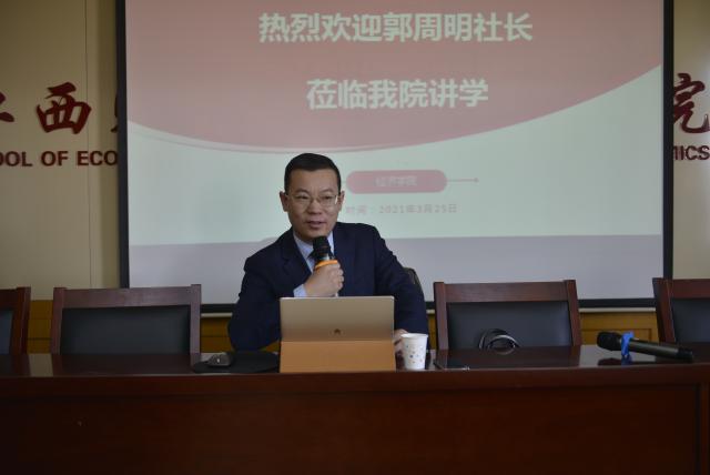 在讲座环节,郭社长首先回顾了新冠疫情以来我国新发展格局下对外经贸的新形势,强调指出没有顺畅的经济外循环就很难有顺畅的经济内循环。其次,郭社长谈到美国拜登政府政策对中美经济贸易的影响。最后,郭社长分析了新发展格局下RCEP对于中国面临的机遇和挑战,并认为RCEP对于实现中华民族伟大复兴具有重要意义。