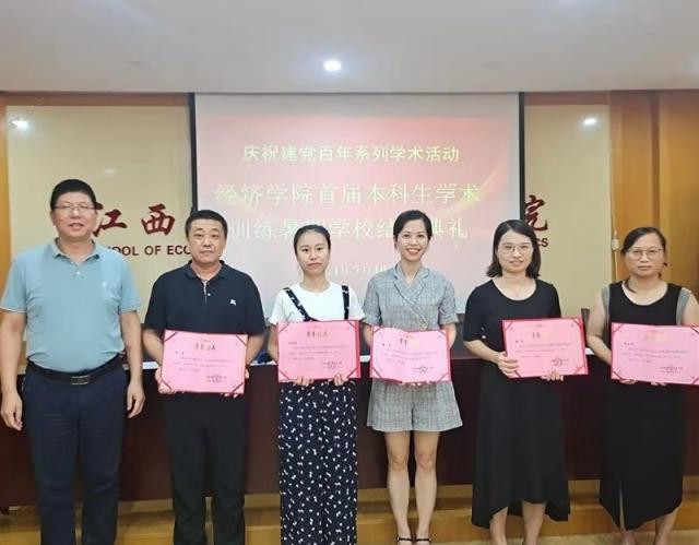 学员代表上台发言,收获颇丰的喜悦溢于言表,感激之辞仍萦绕耳畔。感谢张利国院长递上敲门砖,带领同学们叩开学术世界的大门;感谢潘丹教授手把手教学员写论文摘要、关键词、引言;感谢裘莹副院长带领同学们搜索前沿文献,在课题申报中注重选题和学术创新;感谢周谷珍博士给大家加上装备,让同学们运用stata去做实证研究。并且,同学们表示学习经济学专业一定要有“顶天立地”和“经世济民”的情怀,今后应将所学经济学理论与当代中国现实相结合,把研究做在祖国大地上,充分利用学校现有的资源,开拓视野、追踪最新学术的前沿动态。