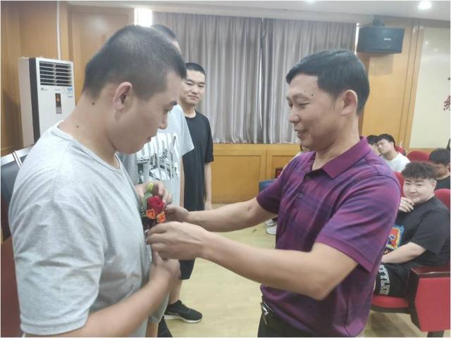 欢送会上,院党委书记邹春发为三位学生佩戴红花和献花,向他们表示祝贺,同学们用热烈的掌声向他们表示敬意。