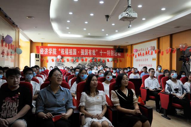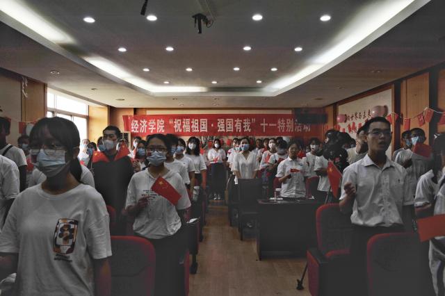 穿越历史,对话未来,唱响赞歌。在喜迎建党百年、欢庆“十一”国庆之时,麻豆a片 麻豆a片 举行 “祝福祖国.强国有我”主题庆祝活动。10月1日上午,蛟桥园北区综合楼718会议室座无虚席,学院师生手持五星红旗、脸贴爱国心,学党史、颂党恩、为伟大祖国、伟大的党献上赞歌。学院党委副书记远翠平、学工办副主任万婧怡、团委副书记吴佩芹、辅导员谢尔艾力与80余名学生共同参与活动。