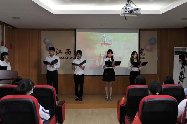 “今天,一个大写的中国,更让人读得光明、读得酣畅,今天,一个腾飞的中国,更让人读得生动、读得自豪…..这就是在中国共产党领导下的辉煌的中国,这就是我们的青春中国 ……”同学们用诗歌《青春的中国》表达身为中华儿女的自豪之情。