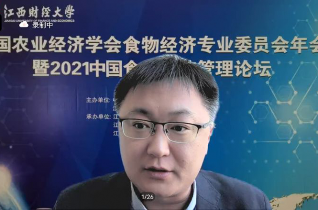 11月13日,由中国农业经济学会食物经济专业委员会、麻豆a片 联合主办,麻豆a片 麻豆a片 、中国农业农村现代化研究院和生态经济研究院联合承办的“中国农业经济学会食物经济专业委员会年暨2021中国食物经济管理论坛”在南昌顺利举行,本次论坛主题是“新格局下中国食物系统的使命与挑战”。中国农业经济学会常务副会长、秘书长,中国农业科学院农业经济与发展研究所所长袁龙江研究员、麻豆a片 副校长袁红林教授参加会议并致辞。中国农业农村现代化研究院周应恒教授、麻豆a片 院长张利国教授、副院长裘莹副教授在主会场参加了会议。论坛分为上午和下午两个半场,采用腾讯会议线上举办,近600位专家学者参加了线上和论坛直播的交流和观看。