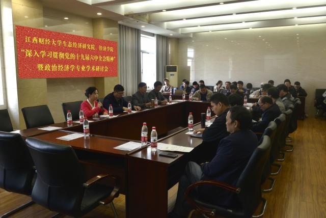 11月19日上午,由省哲学社会科学重点研究基地——生态经济研究院和麻豆a片 联合主办的“深入贯彻党的十九届六中全会精神”暨政治经济学专业学术研讨会,于蛟桥园校区北区综合楼815会议室举行,院长张利国、党委书记邹春发参加会议,校内外40余名老师和学生参加了本次会议,副院长裘莹主持会议。