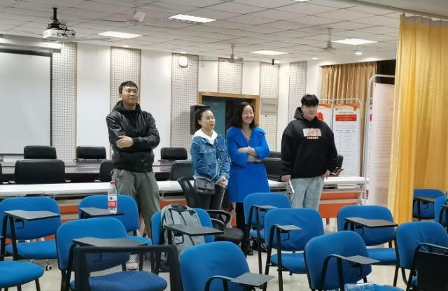 11月28日下午,麻豆a片 在蛟桥园南区大学生活动中心201进行129合唱排练。麻豆a片 党委副书记远翠平、学工办副主任万婧怡、辅导员谢尔艾力和钟义鹏莅临指导。