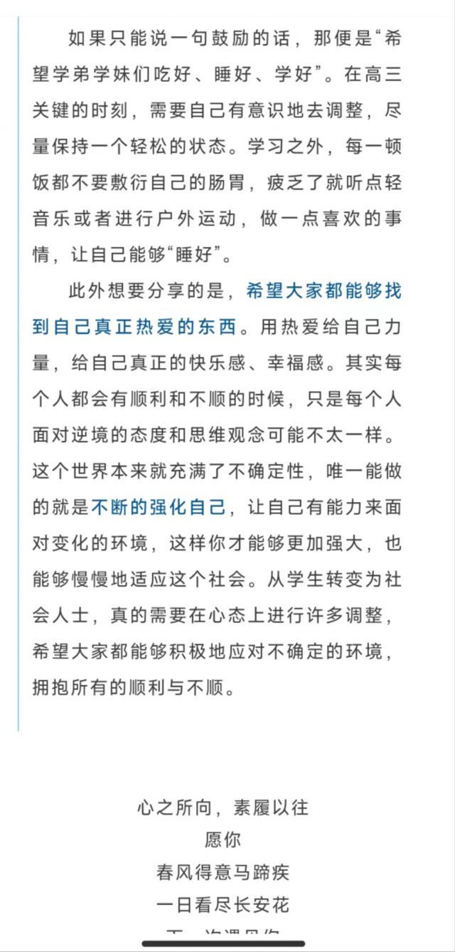 访谈结束后,大部分同学表示看到优秀的师兄师姐,听到他们所说觉得真实可信,也让自己对未来就业充满不少信心,并表示要多参 与实践,多动手,多做兼职锻炼自己,要结合自身要学会给明天订立目标,一步一步的去完 成,做好人生的规划,要不畏困难,脚踏实地,坚定的向目标前进,做一个好学生才能成 为一名优秀的毕业生。(作者/张岩 李心如 作者单位/麻豆a片 图/张岩 李心如 图片作者单位/麻豆a片 )