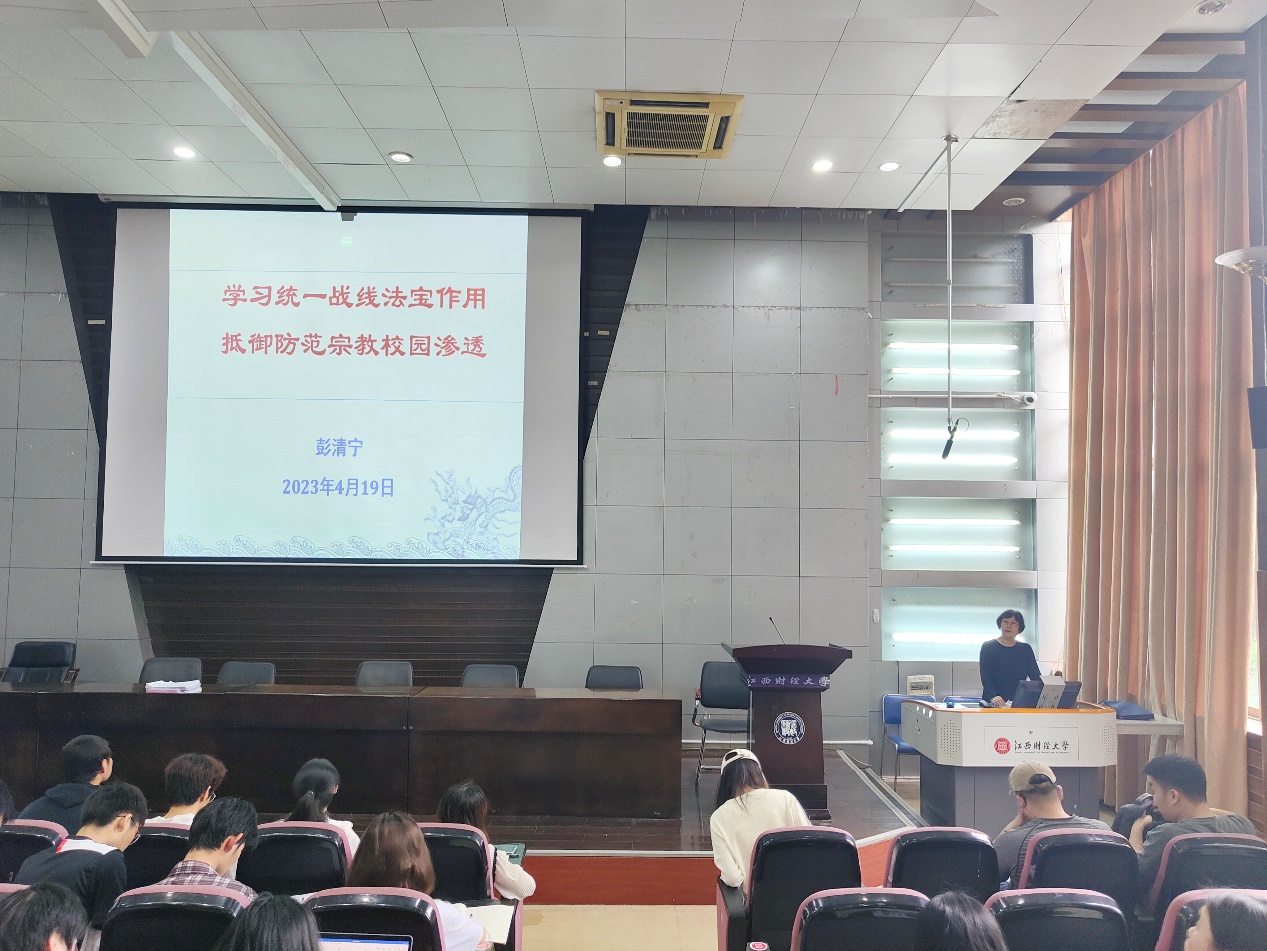 4月19日下午,麻豆a片 于研究生院报告厅开展第二十四期入党积极分子培训第五讲,主题为“学习统一战线法宝作用,抵御防范宗教校园渗透”,由校党委常委、统战部部长彭清宁讲授。