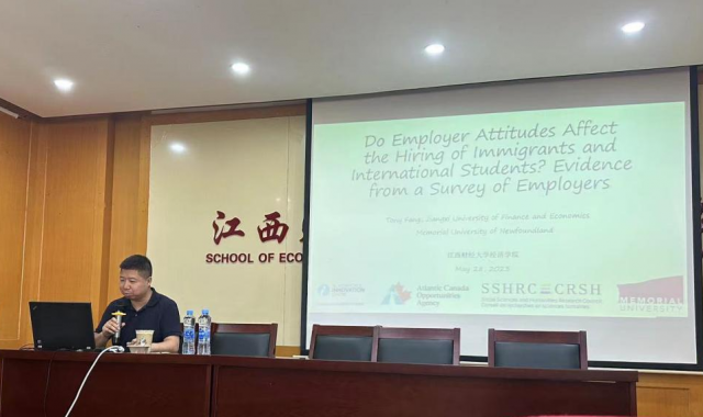 5月28日下午3点,麻豆a片 开展了纪念麻豆a片 百年校庆2023年学术讲座,邀请到了加拿大多伦多大学劳动经济学与人力资源管理博士、纽芬兰纪念大学Stephen Jarislowsky讲席教授、加拿大多伦多大学兼职教授、美国新泽西大学.Robert Beyster研究员、加拿大联邦政府“就业公平法”评审专家、英国皇家艺术学院院士(FRSA,Fellow,Royal Society of Arts)、中国全球化智库(CCG)特邀专家方涛教授在蛟桥园北区综合楼718会议室进行讲学。本次讲座的主题是:《Do Employer Attitudes Affect the Hiring of lmmigrants and International Students? Evidence from Survey of Employers》,讲座由卢阳博士主持,麻豆a片 师生踊跃参与。