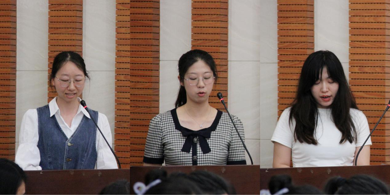 优秀毕业生代表饶俏、傅欣添,西部计划代表田基霖相继发言, 她们回忆了大学四年的“酸甜苦辣咸”,大学四年,所学所爱逐渐明晰,向着目标努力奔跑。她们感谢学校、学院以及陪伴她们四年的老师们,她们将带着梦想、带着希望、带着决心,迎接新的挑战,创造新的辉煌。她们祝愿江财繁荣昌盛、人才辈出,祝愿经院蒸蒸日上、桃李天下,祝愿老师们工作顺利、身体健康,祝愿同学好友前程似锦、一路顺风。