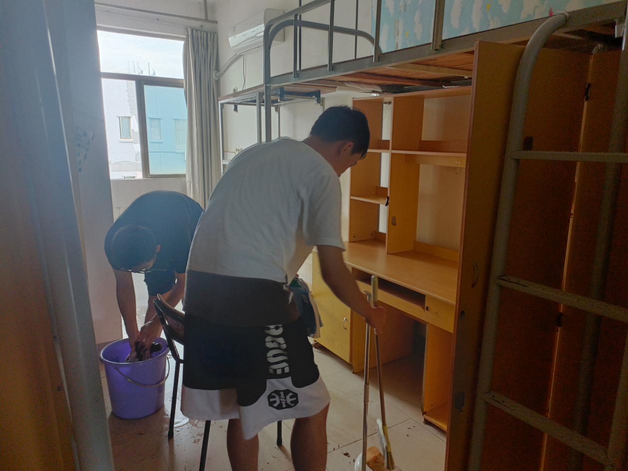 清扫完毕后,负责人对清扫成果进行验收。经过大家的努力,整个新生宿舍焕然一新,地面光滑如镜、窗户明亮如洗、桌面整洁如新······。